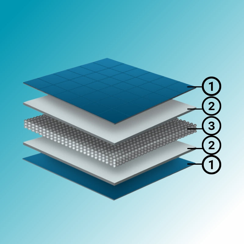 ① 超柔軟全天然竹纖維層 - 涼爽、透氣舒適,並通過OEKO-TEX® 標準 100 認證
