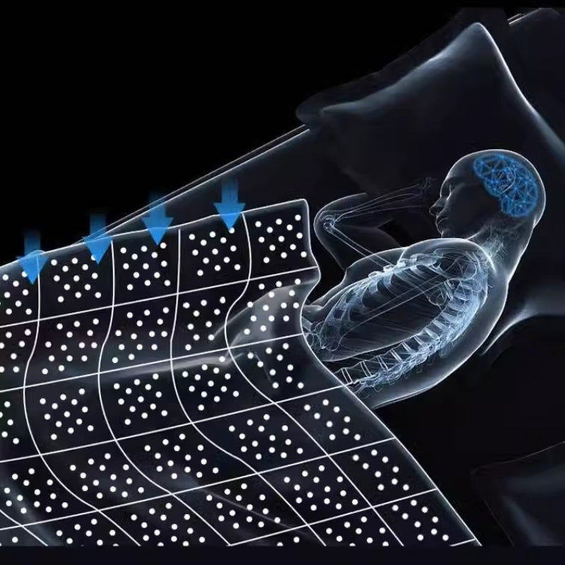 ③ 增重玻璃珠 - 將直徑為 1mm 的重力玻璃珠均勻地封鎖在長寬為 50mm 的正方格中,採用分散式設計,高度貼合身體睡眠曲線,均勻受力,無壓迫感
